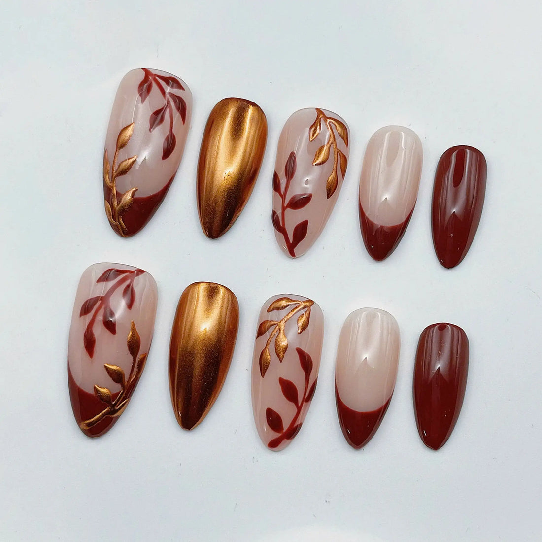 Autumn Leaves | Handmade Elegant Red Metallic Press-On Nails