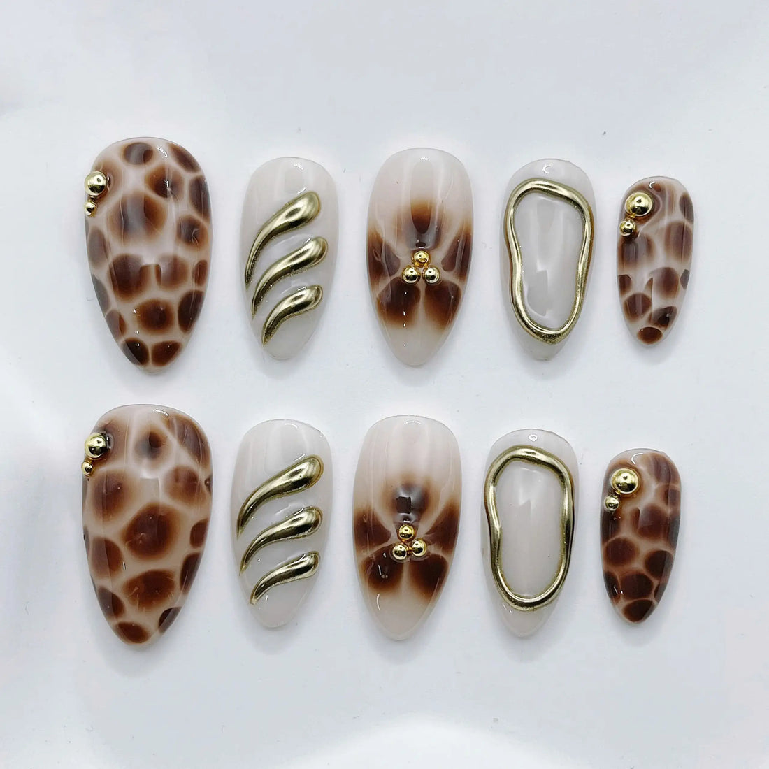 Giraffe Print | Handmade Chic Brown Gold Animal Press-On Nails