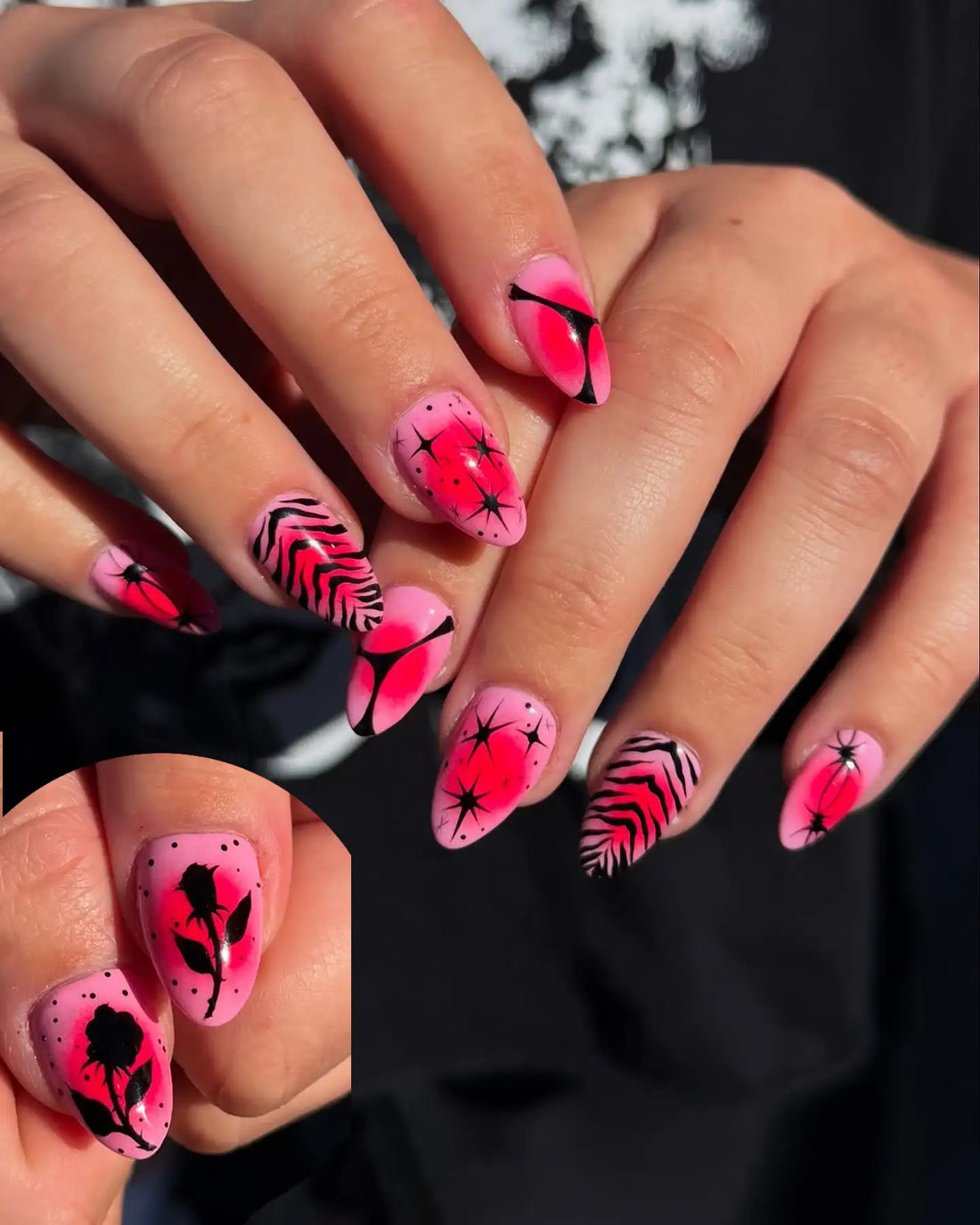 Pink Zebra | Handmade Summer Bright Aura Star Press-On Nails