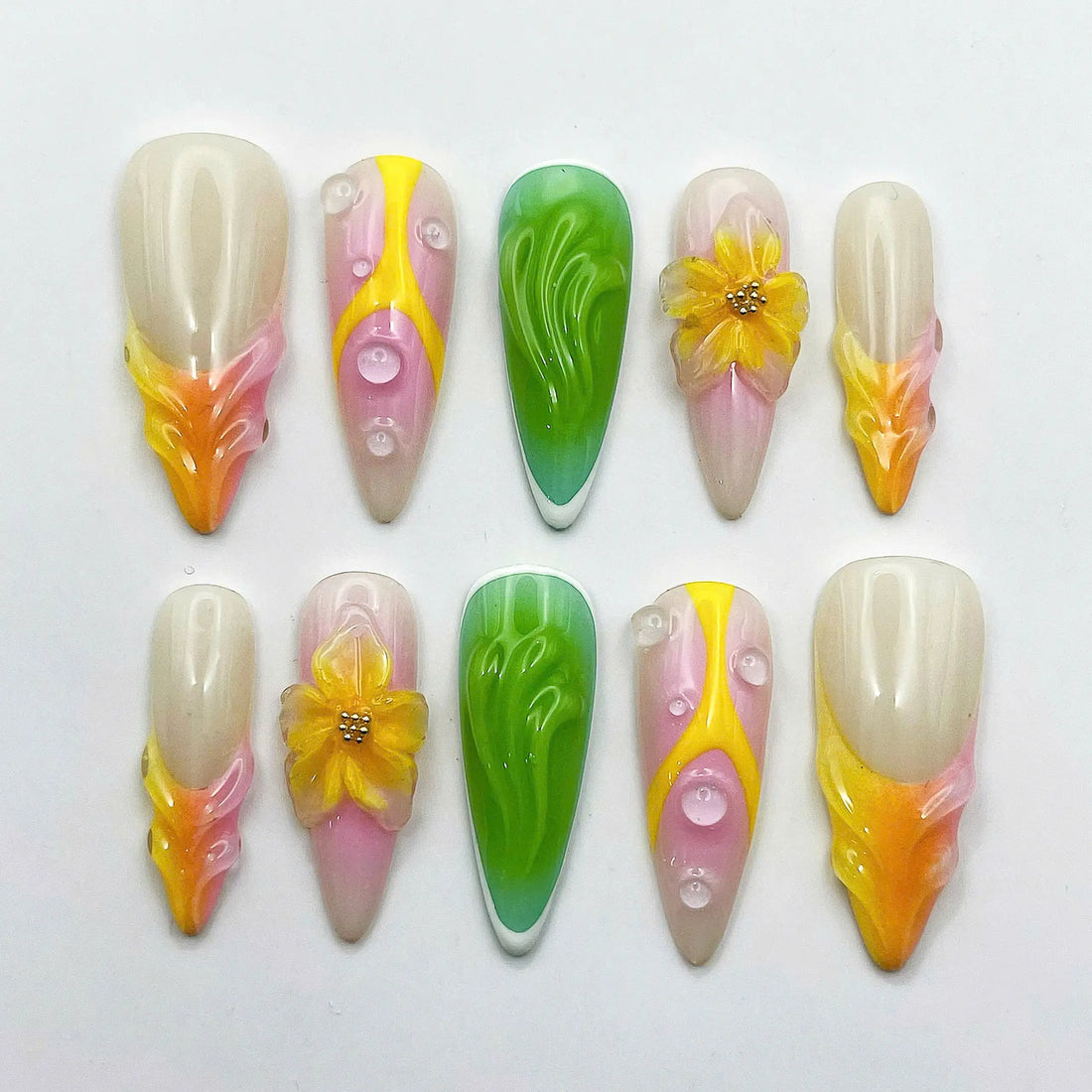 Spring Dew | Handmade 3D Flower Water Drop Press-On Nails