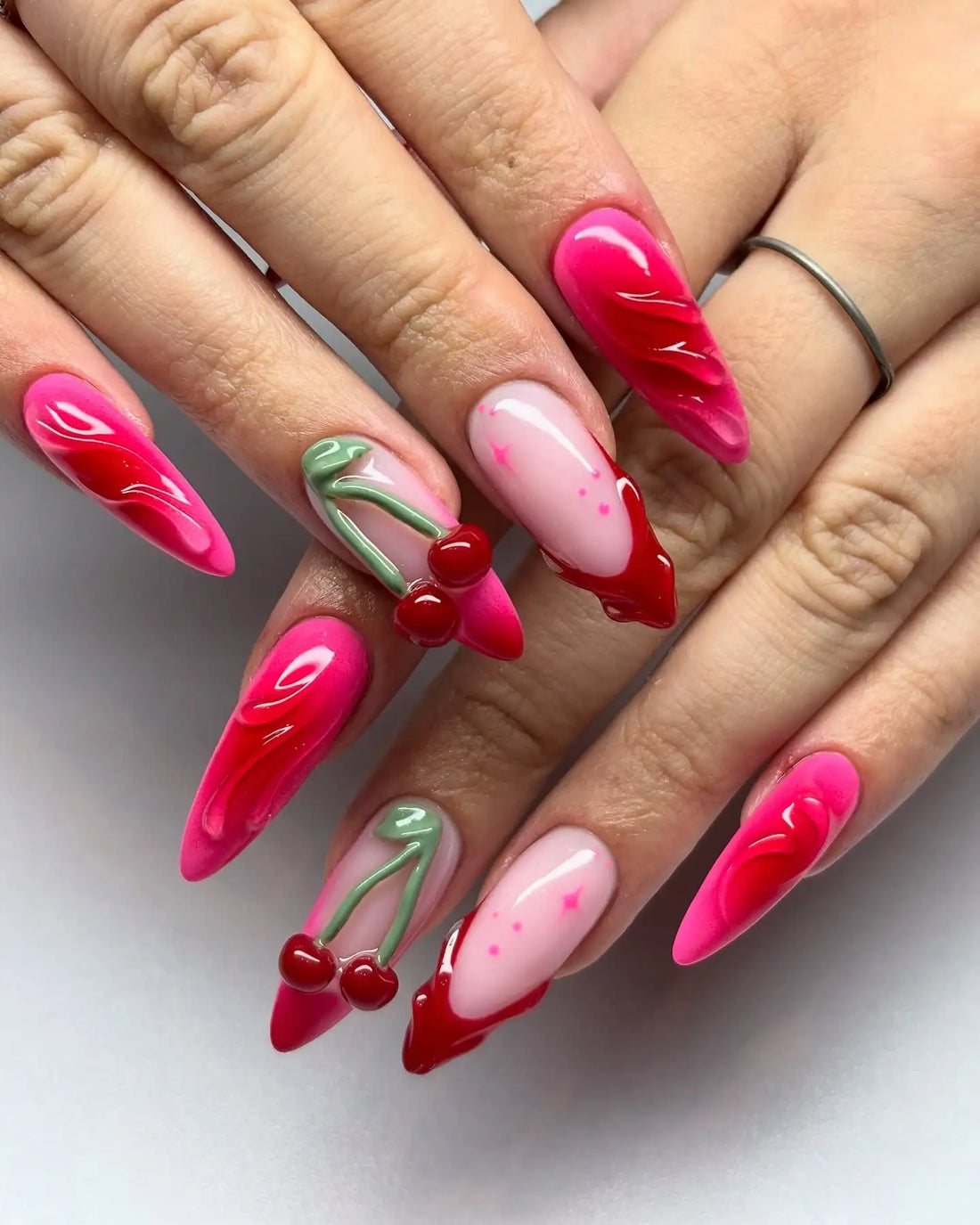 Textured Cherry | Handmade Pink Swirl 3D Almond Press-On Nails