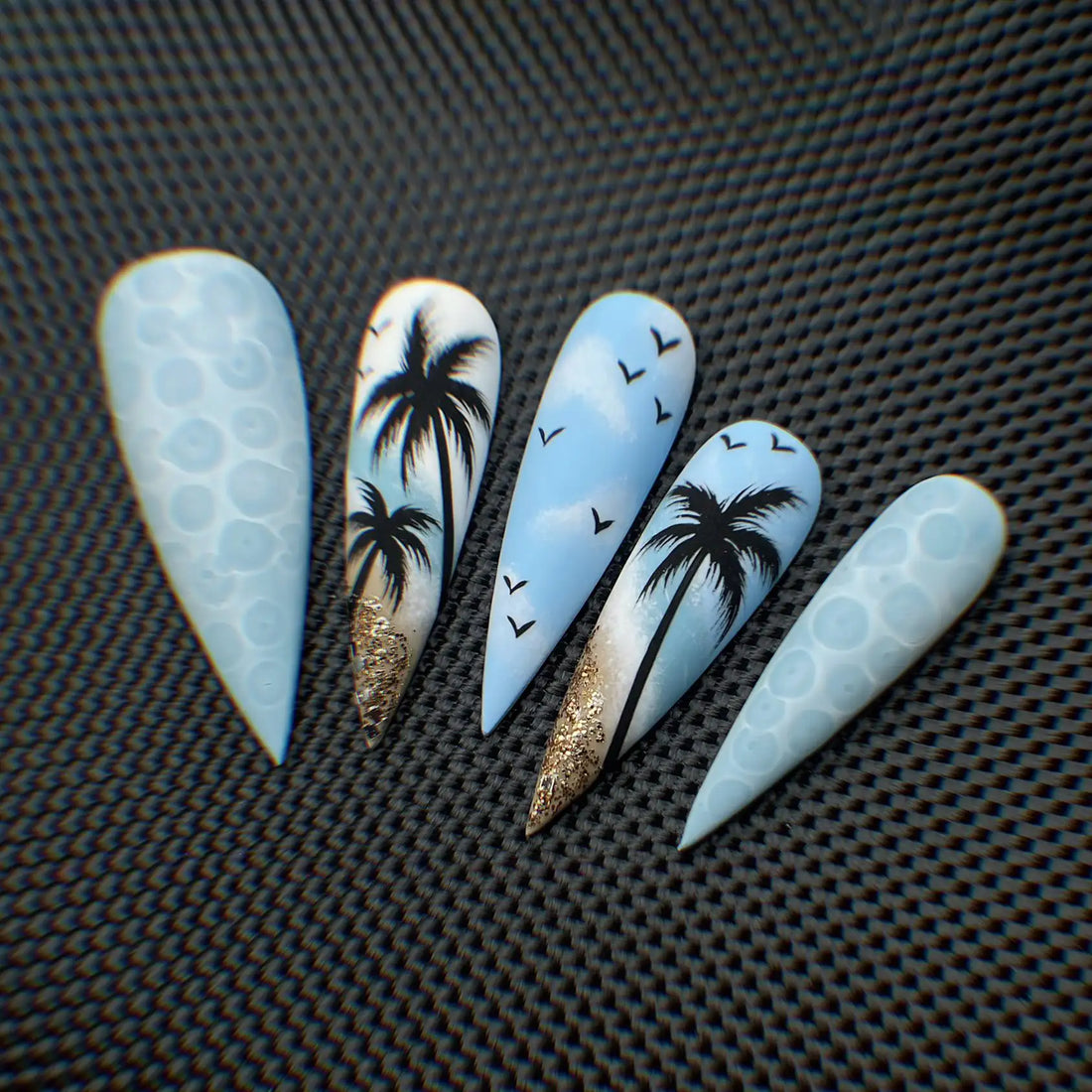 Tropical Beach | Handmade Blue Glitter Summer Press-On Nails