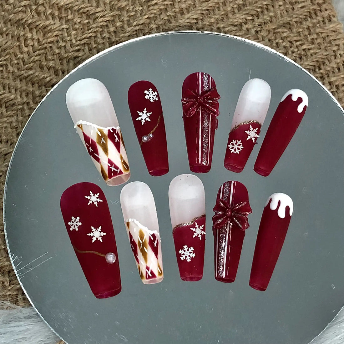 Adorn your fingers with these exquisite handmade press-on nails! Featuring delicate snowflakes, elegant bows, and...