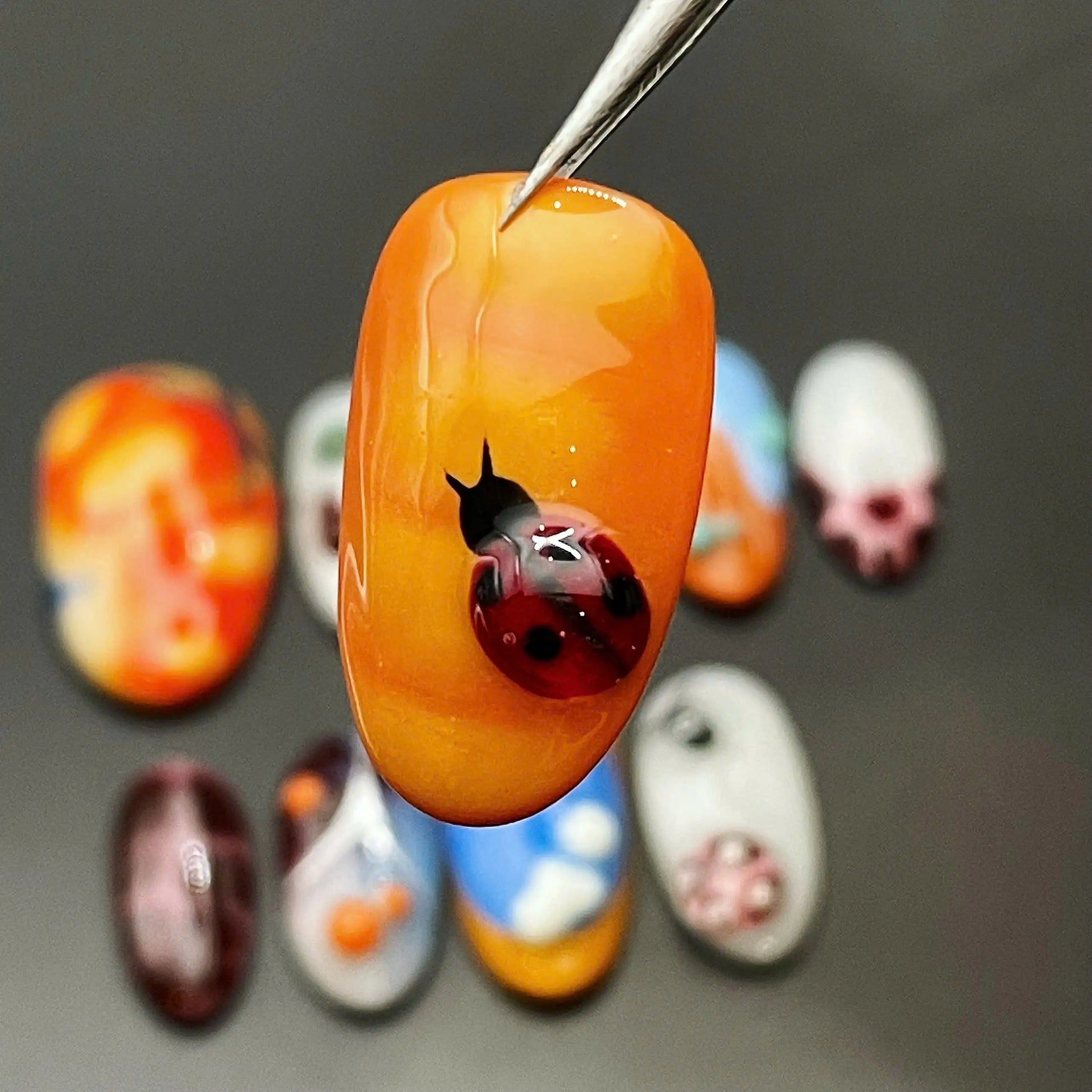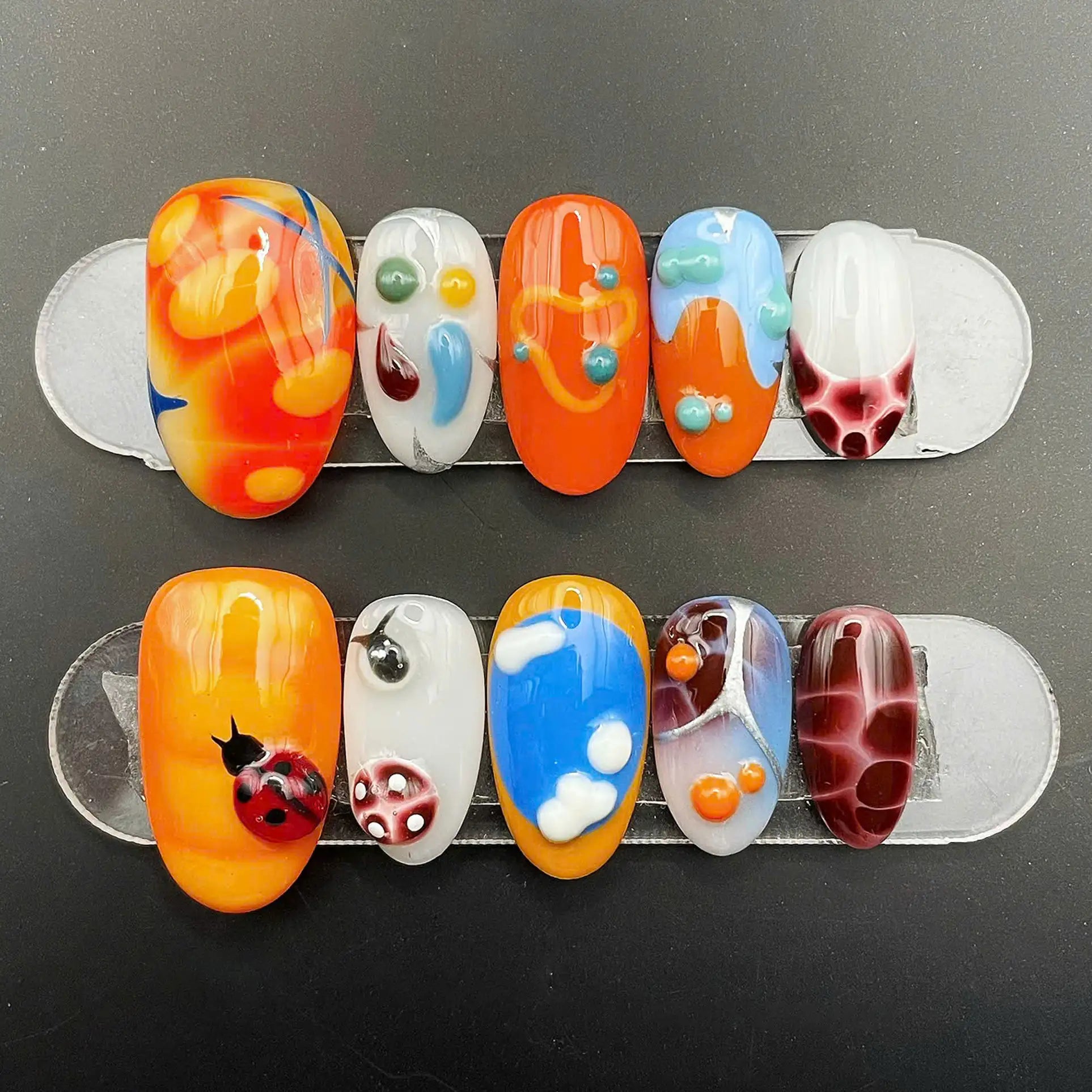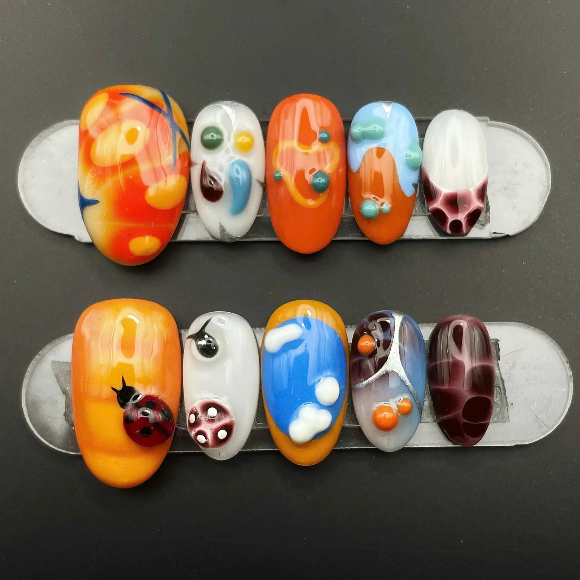Funky Ladybug | Handmade 3D Orange Abstract Press-On Nails