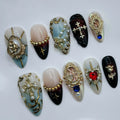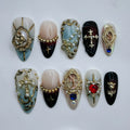 Gothic Angel | Handmade Luxury Gold Cross Holy Press-On Nails