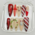 Celebrate the season with these delightful handmade press-on nails! Featuring sweet candy canes, charming reindeer, festive gift ribbons, and classic wreaths. Reusable and customizable, these unique fingernails are perfect for Christmas parties, holiday gatherings, or adding joyful cheer to daily wear. Available in various shapes and lengths and a glossy finish. Get your festive set now!