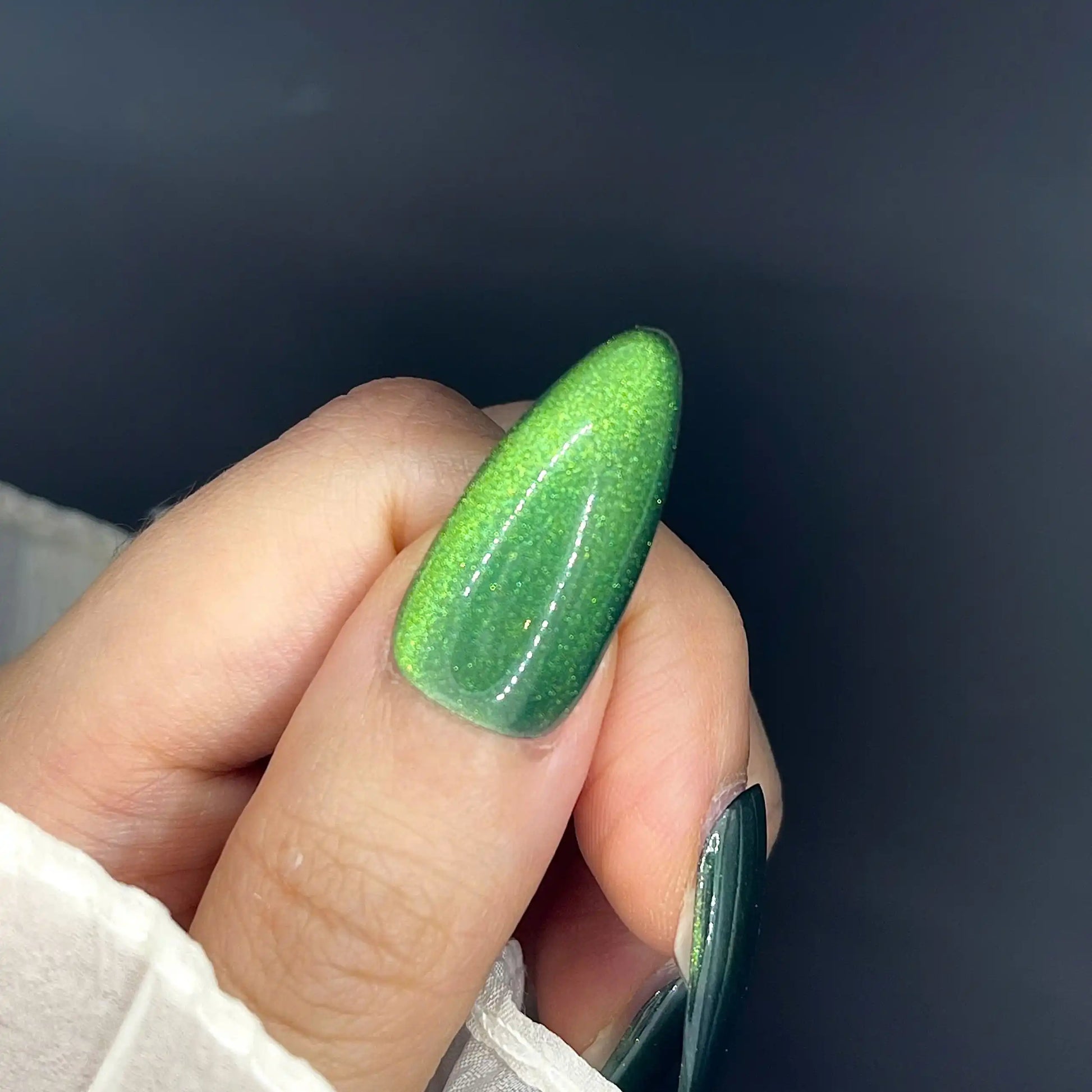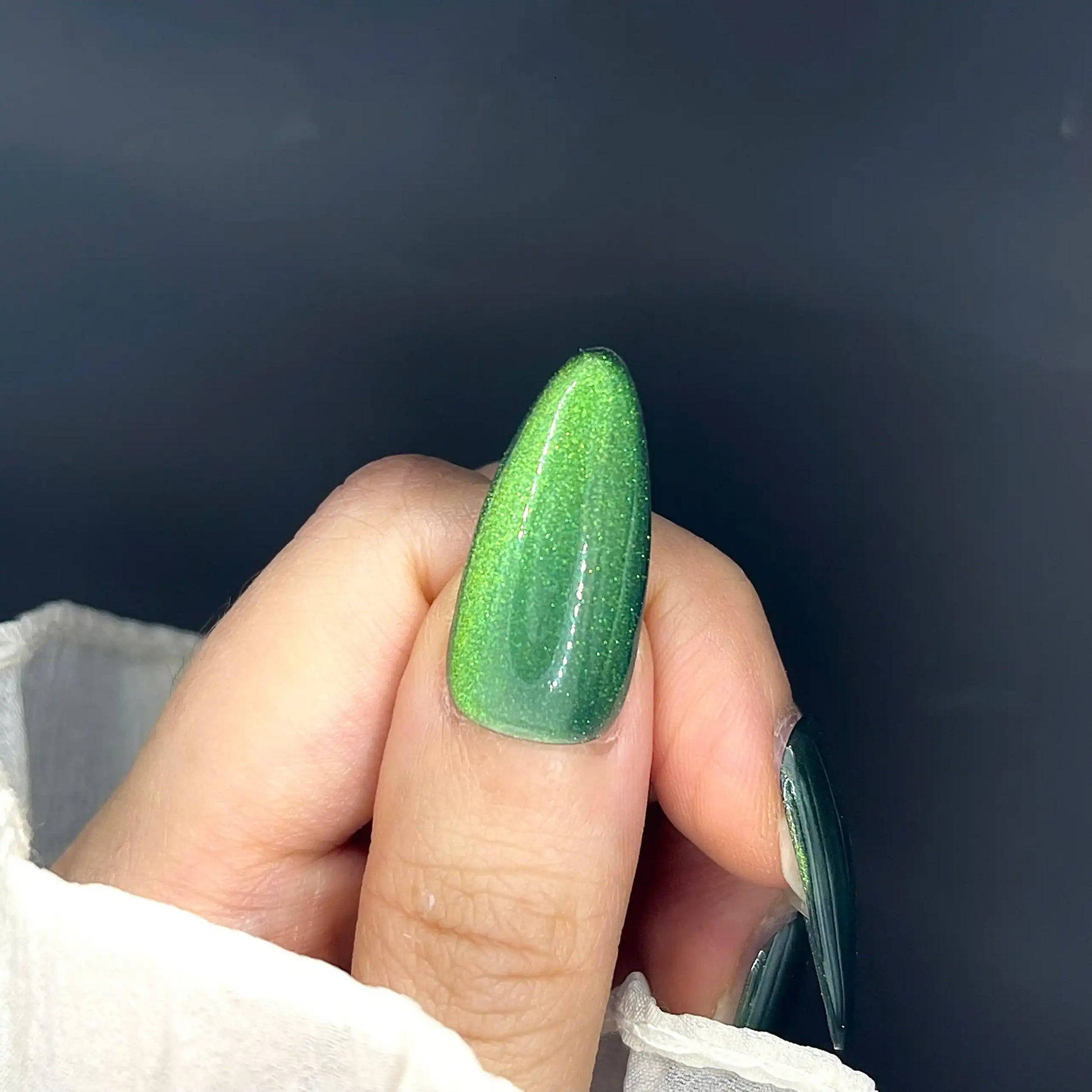 Handmade Green Cat Eye Magnetic Glitter Vibrant Press on Nails A19