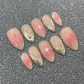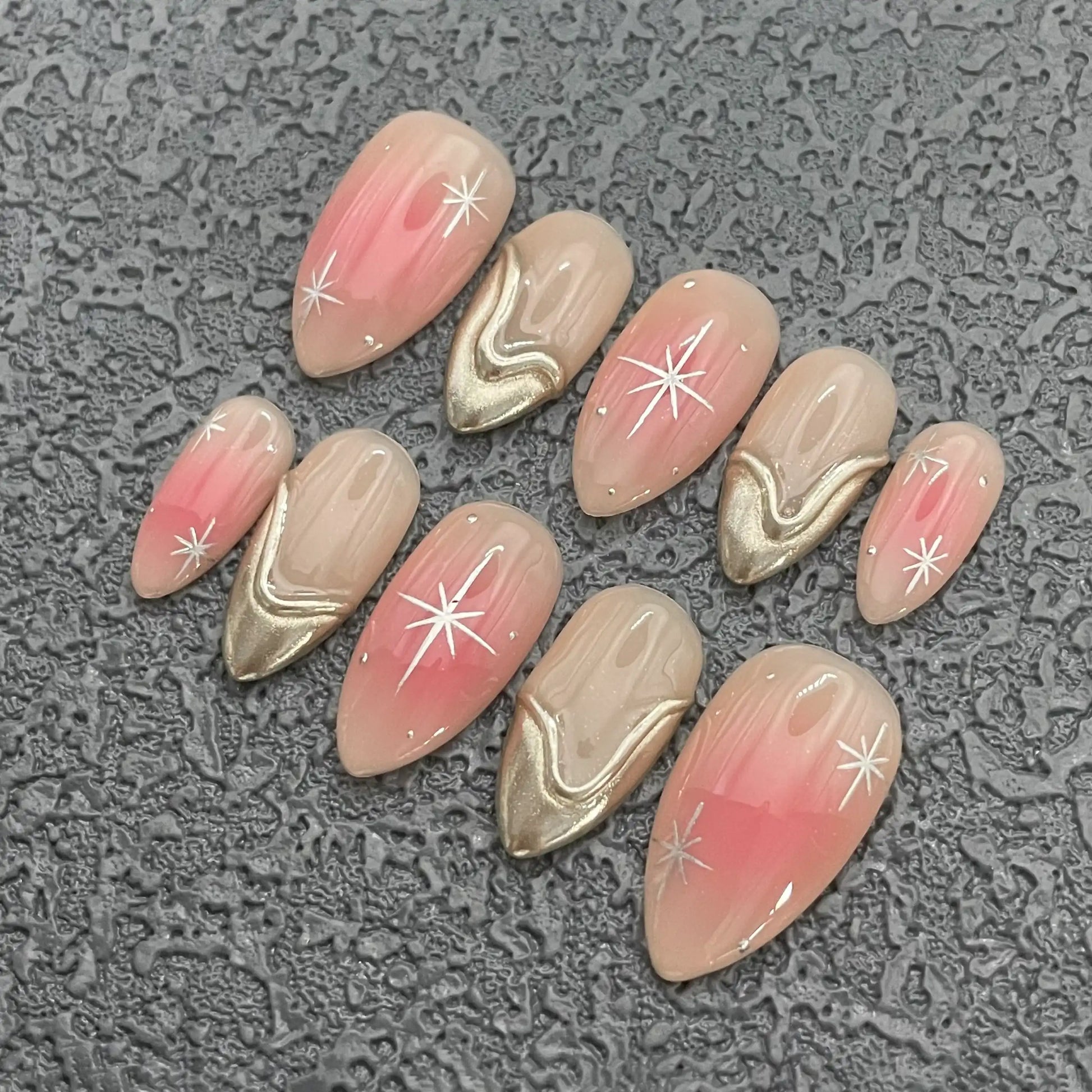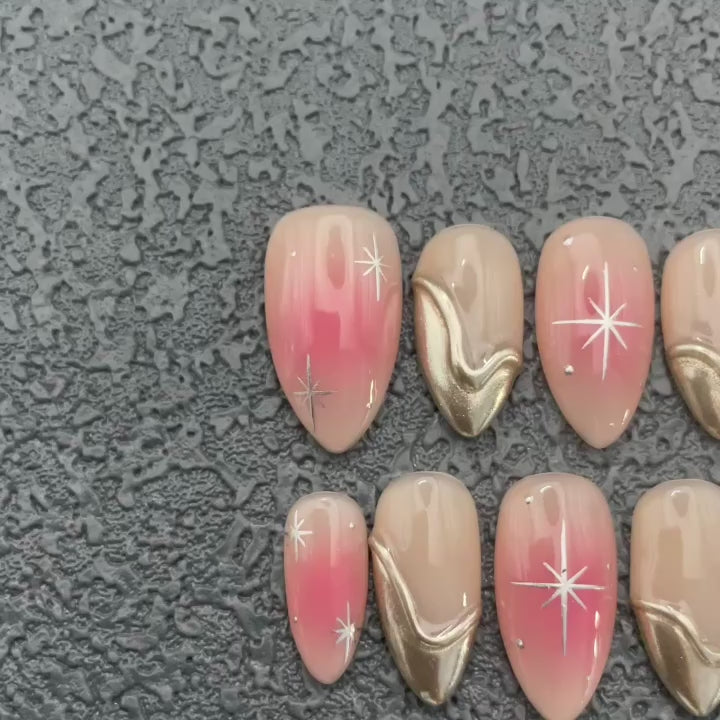 Handmade Pink Nude Silver Gold Star Elegant Subtle Press on Nails K03