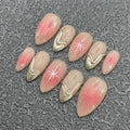 Adorn your hands with these enchanting handmade press-on nails! Featuring soft pink and nude gradients, delicate silver or gold metallic swirls, and sparkling starburst designs. Reusable and customizable, these elegant fingernails are perfect for weddings, special occasions, or adding a chic, subtle touch to daily wear with a glossy finish. Available in various shapes and lengths. Embrace delicate glamour – get your set now!