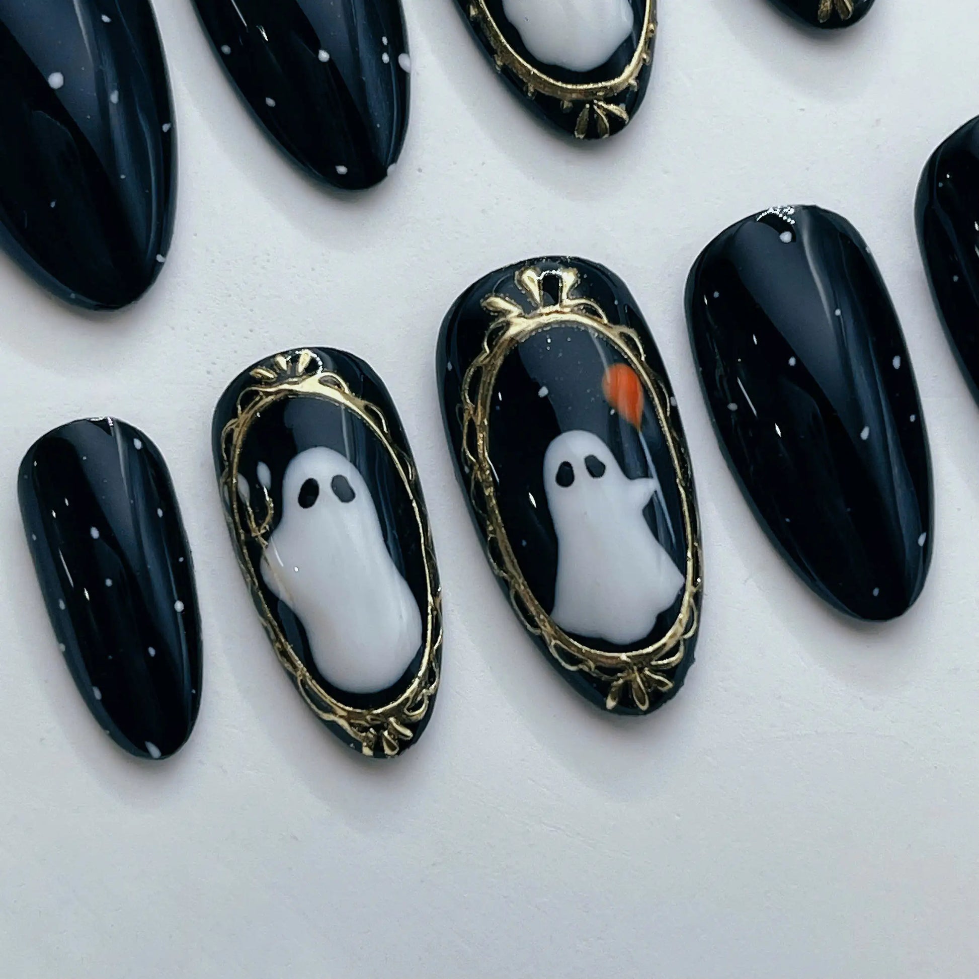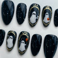 Haunted Portrait | Handmade Spooky Ghost Black Press-On Nails